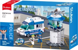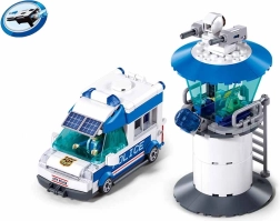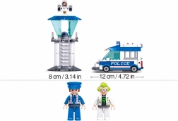 Zestaw obejmuje 245 precyzyjnych elementów, które można złożyć w realistyczne policyjne zaplecze obejmujące auto i wieżę.