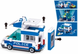 Ten radiowóz zbudowany jest z łączonych plastikowych klocków i zawiera funkcjonalne elementy, takie jak antena satelitarna oraz ruchome drzwi.
