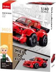 Z tym zestawem Sluban zbudujesz elegancki czerwony samochód wyścigowy z dopracowanymi detalami. Zestaw zawiera:
