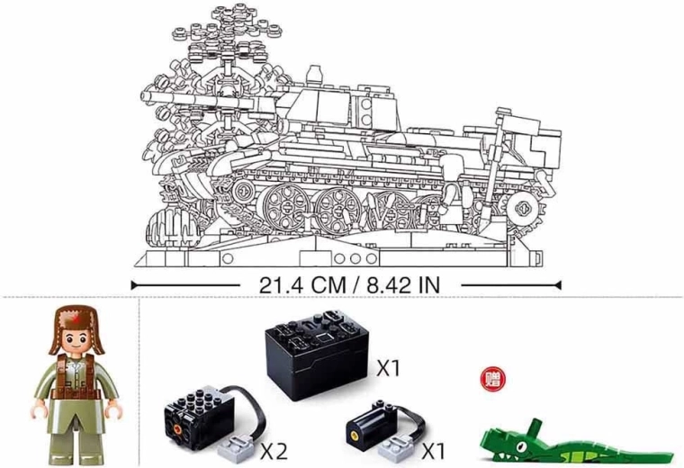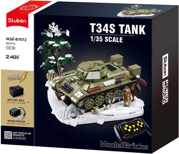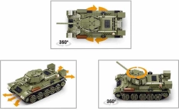 Model czołgu Sluban T34/76 zapewnia dzieciom wyjątkową zabawę połączoną z możliwością rozwoju umiejętności technicznych. Dzięki zdalnemu sterowaniu czołg może jechać do przodu, do tyłu, obracać się o 360 stopni, a jego wieża również obraca się o 360 stopni. Zestaw zawiera: