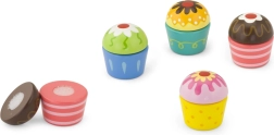 Uwolnij dziecięcą wyobraźnię i pozwól małemu cukiernikowi układać własne słodkie kompozycje. Każda babeczka składa się z dwóch części połączonych rzepem – polewę i korpus można łatwo wymieniać, wciąż na nowo. Idealny dodatek do dziecięcej kuchni oraz do zabawy w sklep lub kawiarnię.