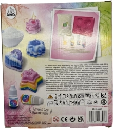 Tworzenie świeczek jest bardzo proste i zabawne, dzięki czemu każde dziecko może rozwijać swoją kreatywność i uczyć się nowych rzeczy. Zestaw zawiera woskową bazę, formę, barwnik, esencję, knot, mieszadełko, patyczki lodowe oraz instrukcję. Wymiary opakowania ok. 20 × 23 × 5 cm. Wiek 3+.