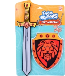 Piankowy rycerski zestaw – miecz i tarcza z herbem lwa