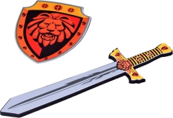 Ten dziecięcy zestaw łączy miękki piankowy materiał z atrakcyjnym wzornictwem rycerskiego ekwipunku. Tarcza z lwią głową i detalicznie zdobiony miecz pobudzają wyobraźnię i zapraszają do przygód – od turniejów po obronę królestwa.