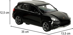 Odkryj uczucie jazdy z modelem Porsche Cayenne Turbo od Rastar! To eleganckie czarne SUV jest w skali 1:14 dokładną repliką słynnego samochodu – z precyzyjnie wykonanym logo Porsche, realistycznymi reflektorami i charakterystyczną sylwetką. Model jest wyposażony w gumowe opony, które zapewniają doskonałą przyczepność, a jednocześnie chronią podłogę, co czyni go idealnym do zabawy zarówno w domu, jak i na zewnątrz.