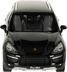Model Porsche Cayenne Turbo w skali 1:14 to precyzyjna miniatura z realistycznymi detalami, takimi jak logo Porsche, przednie reflektory i charakterystyczna sylwetka.