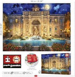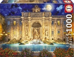 Ciesz się kultowym motywem z puzzlami EDUCA o 1000 elementach – Fontana di Trevi w Rzymie. W zestawie znajduje się klej gratis, a gotowe dzieło ma wymiary ok. 68 × 48 cm.