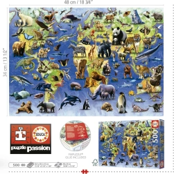 Odkryj piękno i różnorodność natury z puzzlami EDUCA przedstawiającymi motyw 100 zagrożonych gatunków. Dzięki 500 elementom zyskasz przyjemną dawkę koncentracji i relaksu, a gotowy obraz o wymiarach ok. 48 × 34 cm będzie świetnie prezentował się na ścianie lub półce.