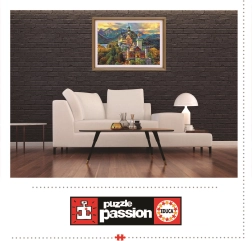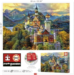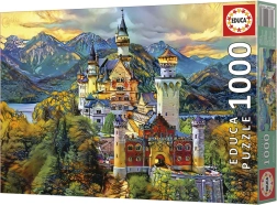 Ciesz się relaksem i wyzwaniem z dopracowanymi w detalach puzzlami z motywem ikonicznego zamku Neuschwanstein. Marka Educa słynie z wysokiej jakości druku, precyzyjnie wyciętych elementów oraz przyjemnego w dotyku materiału, dzięki któremu części świetnie do siebie pasują.