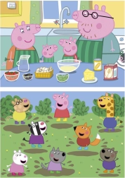 Zestaw zawiera 2 drewniane puzzle o tej samej liczbie elementów i identycznym wymiarze, idealne do ćwiczenia motoryki małej, koncentracji i myślenia logicznego. Ulubione postacie z bajki Świnka Peppa natychmiast przyciągną uwagę dzieci i zmotywują je do układania.