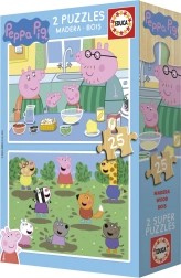 Odkryj zabawę z drewnianymi puzzlami dla najmłodszych: dwa obrazki z motywem Świnka Peppa, każdy po 25 elementów, z wysokiej jakości drewna i z dużymi elementami ułatwiającymi układanie. Wyraziste kolory i trwałe wykonanie zapewniają długą żywotność i radość z układania.