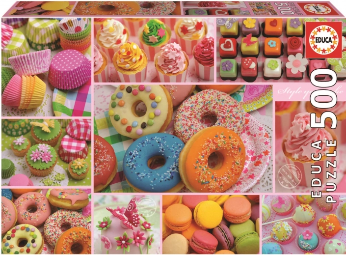 Zrelaksuj się przy kolorowym obrazie pełnym słodkości – puzzle EDUCA Słodka impreza o 500 elementach są idealne do odpoczynku i treningu koncentracji. W zestawie znajdziesz także klej FIX PUZZLE gratis do łatwego utrwalenia gotowego obrazka o wymiarach ok. 48 × 34 cm.