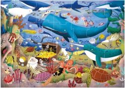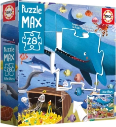 Puzzle Educa z motywem Podwodny świat łączą naukę i relaks. Dzięki większym elementom łatwo się je układa i świetnie sprawdzają się jako pierwsze puzzle oraz podczas wspólnych rodzinnych chwil. Duży format po ułożeniu (ok. 68 × 48 cm) gwarantuje, że wszystkie detale kolorowych morskich zwierząt będą dobrze widoczne.