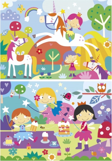 Ten zestaw dwóch puzzli ucieszy wszystkich małych miłośników baśniowych motywów. Dzięki tej samej wielkości i liczbie elementów oba obrazki są doskonałe dla dzieci, które chcą poprawić spostrzegawczość i cierpliwość. Wysokiej jakości nadruk i wyraziste kolory gwarantują piękny efekt, który dzieci chętnie będą układać wielokrotnie.