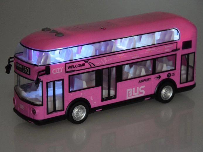 Różowy dwupiętrowy autobus z dźwiękiem i otwieranymi drzwiami ZA4748