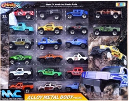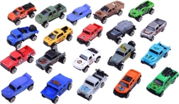 Duży zestaw 20 metalowych samochodzików ucieszy małych kolekcjonerów i miłośników wyścigów. Modele mają metalową karoserię na plastikowym podwoziu, obejmują auta terenowe i pick-upy z szczegółowym wykonaniem i atrakcyjną grafiką. Każdy model ma długość około 7,5–8 cm.
