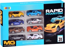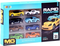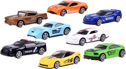Zestaw zawiera 8 różnokolorowych i stylizowanych autek – od wyścigowych po policyjne motywy. Świetna różnorodność do rywalizacji i kolekcjonowania.