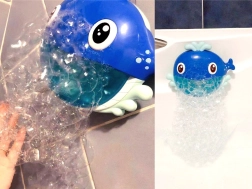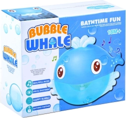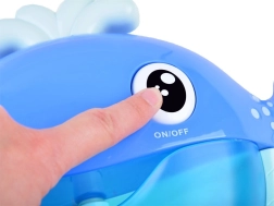 Włącz wieloryba przyciskiem w oku i obserwuj strumień pianowych bąbelków, które zamienią kąpiel w zabawę.