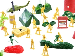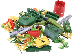 Ten rozbudowany zestaw wojskowy oferuje kompletne wyposażenie do emocjonujących misji na lądzie, w powietrzu i na wodzie. Znajdziesz tu dziesiątki żołnierzy w dwóch kolorach, różne rodzaje sprzętu (w tym czołg, łódź podwodną i helikoptery) oraz bogate akcesoria terenowe i obronne. Idealny do zabawy w grupie, rozwijania wyobraźni i opowiadania własnych wojskowych historii.