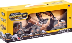 Ten metalowy zestaw modeli łączy realistyczne wykonanie z wysoką trwałością. Koparka z w pełni obrotową kabiną i funkcjonalnym ramieniem pozwala dzieciom wiernie odtwarzać prawdziwe prace budowlane, a wywrotka z gumowymi kołami porusza się gładko po podłodze i przewozi drobne ładunki. Idealny do kreatywnej zabawy, rozwijania małej motoryki oraz jako stylowa dekoracja do pokoju dziecięcego.