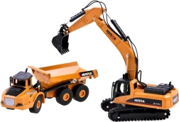 Wytrzymały metalowy zestaw maszyn budowlanych zawiera realistyczną koparkę i wywrotkę dla dzieci od 8 lat. Dzięki w większości metalowej konstrukcji zestaw modeli jest odporny i trwały, z drobnymi detalami zapewniającymi autentyczną zabawę i ekspozycję. Koparka oferuje obrotową kabinę 360° oraz ruchome ramię z łyżką, a wywrotka ma duże gumowe koła przyjazne dla podłogi i skrzynię ładunkową do przewożenia drobiazgów.
