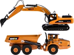 - Realistyczne funkcje: obrotowa kabina koparki 360°, przegubowe ramię i łyżka, uchylna skrzynia ładunkowa.