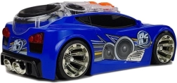 Zabawny sportowy samochód dla dzieci z dachem pełnym głośników, dynamicznymi efektami świetlnymi i muzyką. Dzięki dwóm przyciskom uruchomisz melodie, dźwięk przyspieszenia i zobaczysz, jak koła szybko się rozpędzają, a głośniki poruszają się w rytm. Idealny prezent dla małych fanów muzyki i aut.