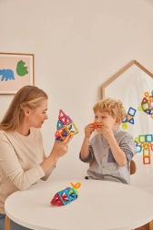 Odkryj nowe możliwości z Magformers PLUS 14 – podstawowym zestawem, który oferuje rozszerzone możliwości budowania dzięki elementom MINI. Części zostały zaprojektowane tak, aby ćwiczyć motorykę małą, pobudzać kreatywność oraz uczyć dzieci rozpoznawania kolorów i podstawowych kształtów geometrycznych.