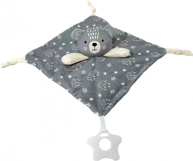 Przytulanka–uspokajacz miś Miluś to mięciutki pluszowy towarzysz, który pomaga dzieciom czuć się bezpiecznie i spokojniej zasypiać. Delikatna, przyjemna w dotyku tkanina w eleganckim, szarym kolorze jest łagodna dla skóry dziecka, a rozmiar 25 × 25 cm świetnie mieści się do wózka, łóżeczka i dziecięcych rączek.