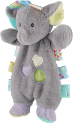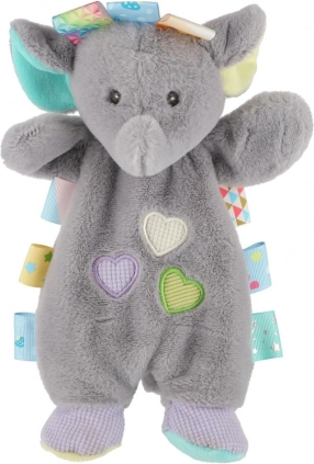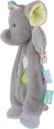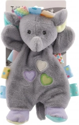 Ta miękka przytulanka w kształcie słonika łączy komfort i angażującą zabawę. Mięciutki plusz, pastelowe detale i wielobarwne metki na brzegach zachęcają do chwytania i dotykania, wspierając małą motorykę i rozwój sensoryczny dzieci już od urodzenia.