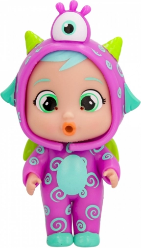 Fuzz z serii CRY BABIES MAGIC TEARS Stars Jumpy Monsters przynosi dzieciom pełne fantazji, radosne opowieści. Laleczka ma zdejmowany silikonowy kostium z motywem uroczej potworki i potrafi płakać kolorowymi łzami – żelem/sluzem. Wystarczy napełnić ją wodą dołączoną buteleczką i delikatnie nacisnąć brzuszek.