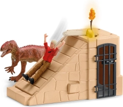 Przygotuj się na niesamowitą przygodę ze Świątynną wyprawą dinozaur od Schleich! Ten zestaw pozwala dzieciom tworzyć różne scenariusze dzięki modułowej strukturze trasy, która zmienia się za każdym razem, gdy się nią bawią. Flynn musi zmierzyć się z wieloma zagadkami i znaleźć ukryte części klucza, aby otworzyć świątynne drzwi. Będą musieli pokonać trzęsący się most i strzeżony skarb pilnowany przez dinozaury.