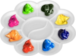 Kwiatowa plastikowa paleta ułatwia separację i mieszanie kolorów, utrzymuje porządek podczas pracy i oszczędza czas.