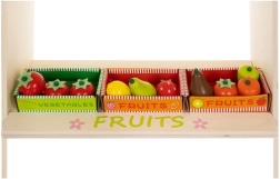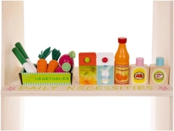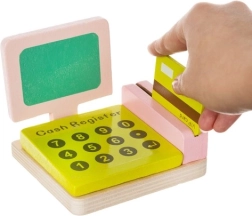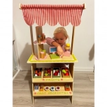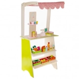 Kasa ze skanerem, waga, obrotowa tablica i mnóstwo drewnianych produktów – wszystko, czego dzieci potrzebują, by otworzyć własny sklep i trenować umiejętności społeczne.