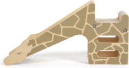 Drewniana zjeżdżalnia z motywem żyrafy, która dodaje zabawy i radości.