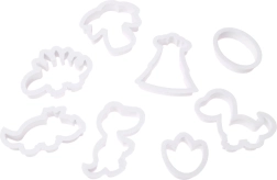 Zestaw zawiera foremki w kształcie dinozaurów, drzewa i wulkanu, które dają kreatywne możliwości podczas pieczenia z dziećmi.
