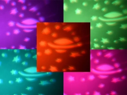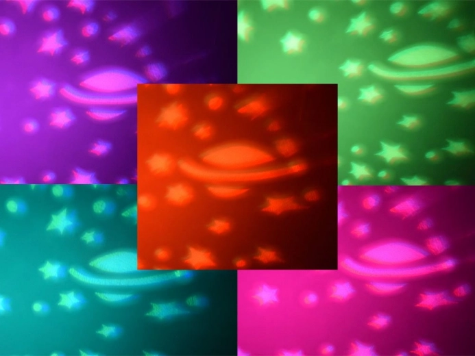 Światło wyświetla kolorowe obrazy gwiazd i księżyca na suficie oraz ścianach pokoju, tworząc kojące środowisko do snu.