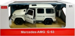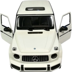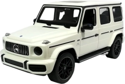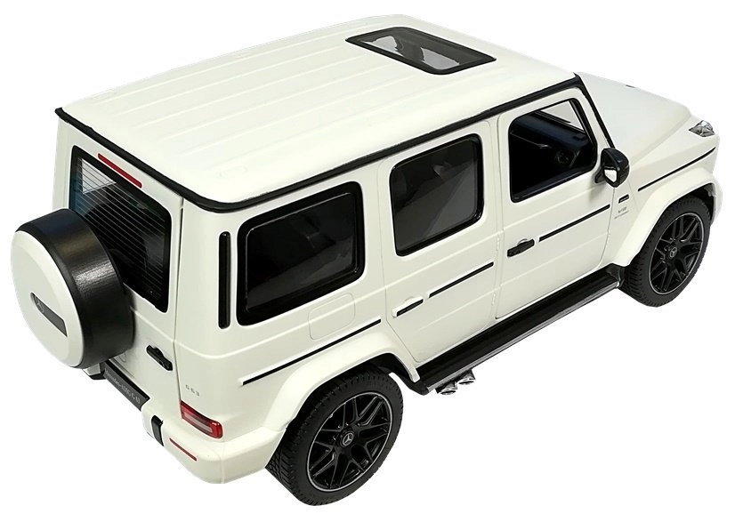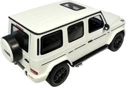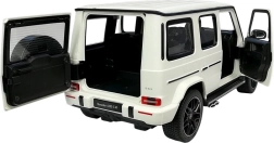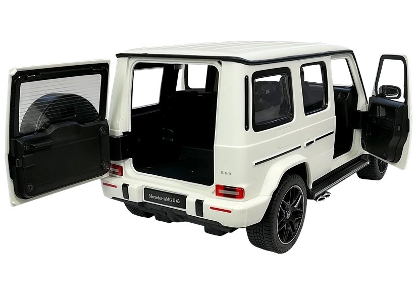 Mercedes G63 zdalnie sterowany w białym kolorze to autentyczna replika w skali 1:14. Auto porusza się do przodu, do tyłu, skręca i hamuje za pomocą pilota. Dzięki terenowemu charakterowi może być używane zarówno w pomieszczeniach, jak i na zewnątrz. Światła w pojeździe włączają się podczas jazdy. Drzwi samochodu otwierane są ręcznie, a wnętrze i podwozie zostały zaprojektowane z dużą dbałością, aby odpowiadać oryginalnemu pojazdowi. Zdalnie sterowany Mercedes jest kierowany za pomocą pilota radiowego i osiąga prędkość 7 kilometrów na godzinę. Zasięg pilota wynosi około kilkudziesięciu metrów i w przeciwieństwie do pilotów na podczerwień może być bez problemu używany na zewnątrz w pełnym słońcu.