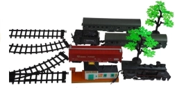 W zestawie: lokomotywa, wagon towarowy, trzy mniejsze wagony, stacja, dwa drzewa, tory oraz dozownik na wodę do efektu dymu. Wystarczy włożyć 4 baterie AA (brak w zestawie) do wagonu towarowego, połączyć z lokomotywą i po krótkim nagrzaniu elementu grzewczego ruszyć w trasę.