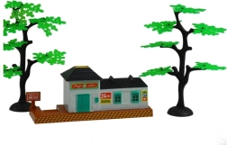 W zestawie znajduje się stacja, drzewa i akcesoria, które urozmaicą zabawę i pozwolą budować własne scenariusze kolejowe.