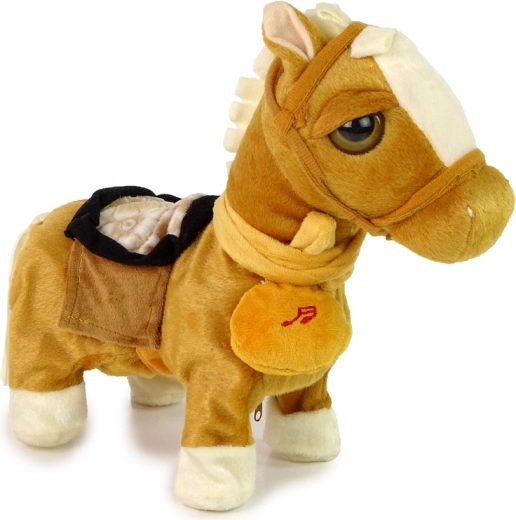 Pluszowy brązowy konik z jasną grzywą to idealny towarzysz dla każdego dziecka marzącego o zwierzęcym przyjacielu. Konik jest wyposażony w interaktywne funkcje, które obejmują ruch, muzykę i efekty dźwiękowe. Po włożeniu baterii wystarczy nacisnąć przycisk, aby konik zaczął grać i poruszać się.