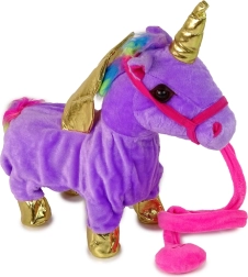Chcesz, aby Twoje dziecko poznało, co znaczy opiekować się swoim pupilem? Ten pluszowy jednorożec to idealny wybór! Wykonany z najwyższą starannością, fioletowy, miękki i pięknie zdobiony złotymi skrzydłami. Zawiera funkcje interaktywne, dzięki którym potrafi rżeć i odtwarzać muzykę w stylu country.