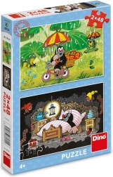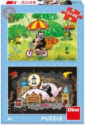 Dziecięce puzzle DINO KRECIEK – Dzień Krecika zawierają dwa obrazki po 48 elementów, idealne dla dzieci od 4 lat. Podczas układania dzieci rozwijają małą motorykę, ćwiczą koncentrację i cieszą się dwoma uroczymi motywami z ulubionej bajki. Puzzle wykonane są z trwałego i bezpiecznego dla zdrowia kartonu i są wyprodukowane w Czechach.