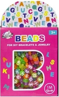 Zestaw kolorowych koralików w pięknym papierowym pudełku, w zestawie znajduje się także sznurek do nawlekania o długości 1 metra. Koraliki można łatwo nawlekać i tworzyć bransoletki oraz naszyjniki – dla siebie lub dla koleżanek i kolegów. Można je łączyć z innymi rodzajami koralików z kolekcji (12 rodzajów).