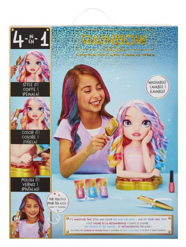 Całkowicie nowa głowa do stylizacji w stylu najpopularniejszej lalki Rainbow High – Belly. Możesz tworzyć pasemka, farbować włosy lub malować paznokcie.
