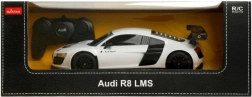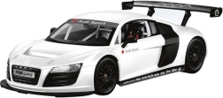 Ciesz się szybką i płynną jazdą z licencjonowanym modelem AUDI R8 LMS w eleganckim białym kolorze. Przyciemniane szyby, dopracowane nadwozie i wyraziste skrzydło podkreślają autentyczny wygląd auta wyścigowego. Gumowe koła zapewniają pewną jazdę po gładkiej i lekko nierównej nawierzchni.