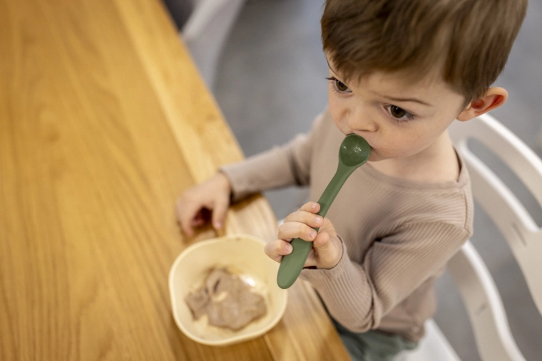 Ergonomicznie wyprofilowana łyżeczka ułatwia karmienie zarówno rodzicom, jak i dzieciom podczas pierwszych prób samodzielnego jedzenia.
