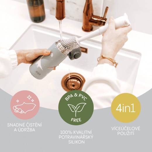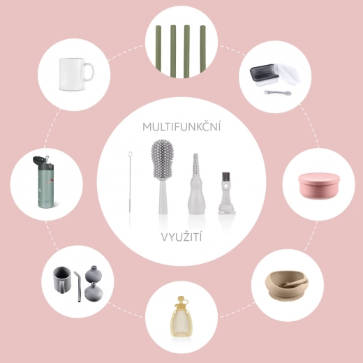 • Trzy różne powierzchnie czyszczące do wszechstronnego zastosowania (butelki, smoczki i słomki)