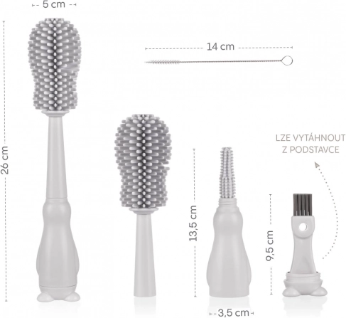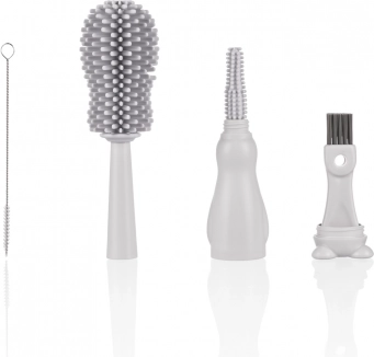 Silikonowa szczotka do butelek dziecięcych 3w1, jasnoszary