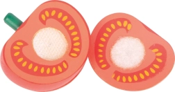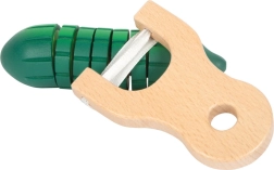 Części ogórka i pomidora połączone rzepem; dzieci mogą je łatwo „kroić” dołączonym nożem.
